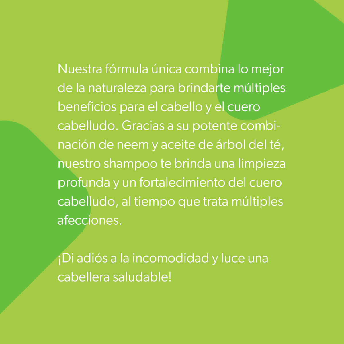 Purifica tu cabello y cuero cabelludo con la poderosa alianza del Neem y el Aceite de Árbol del Té. No solo obtendrás una limpieza profunda sino que también te beneficiarás de sus propiedades terapéuticas